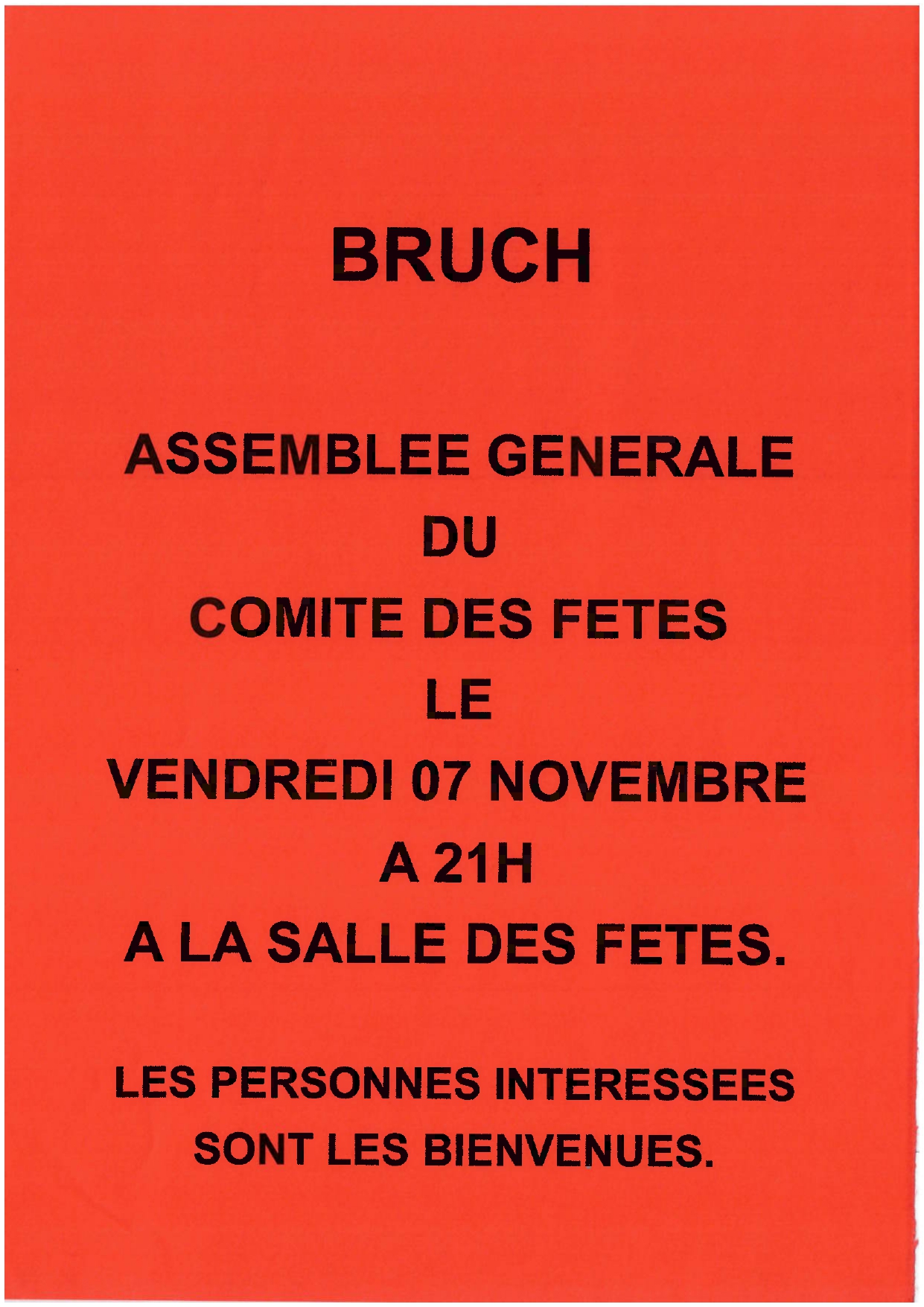 Le comité des fêtes de Bruch vous donne rendez-vous pour son assemblée générale.
